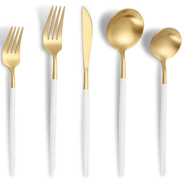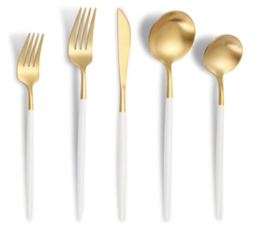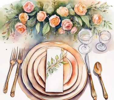 Forks, Knives, Spoons: Forks go on the left, salad forks on outer left and dinner forks closer to the plate. Knifes to the right of the plate and spoon to the right of the knives.