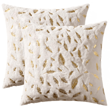 Faux Fur with Gold Feathers Pillow Link to Amazon